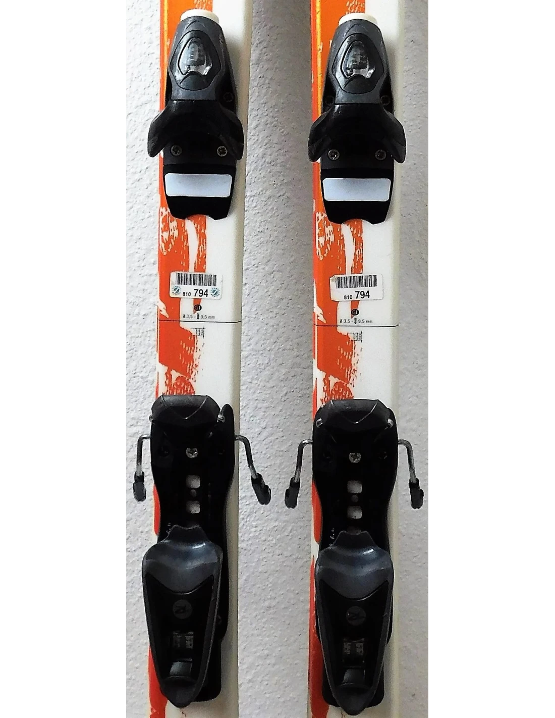 Es wird mit ROSSIGNOL AXIUM JR Bindungen verkauft, die sich einfach über das hintere Fersenteil verstellen lassen.