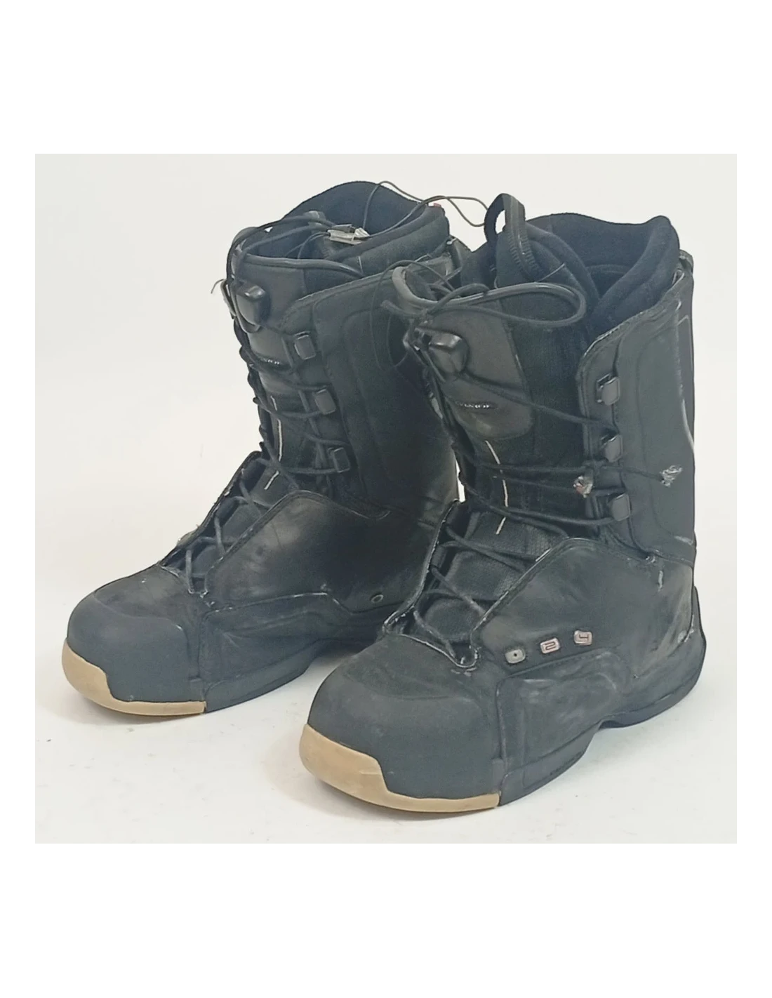 The Salomon F24 used snowboard boots are designed for demanding riders seeking precision, support, and feel. Their stiff flex offers excellent responsiveness, ideal for charging hard in the park, attacking the halfpipe, or carving powerfully on the slopes. Thanks to their Autofit memory foam liner and Fusion construction, they provide exceptional support while reducing bulk, thus improving board feel. The Quicklace system allows for quick and precise tightening, while the low-profile sole promotes excellent contact with the snowboard. A high-performance, technical boot tailored for advanced snowboarders who love to ride aggressively.