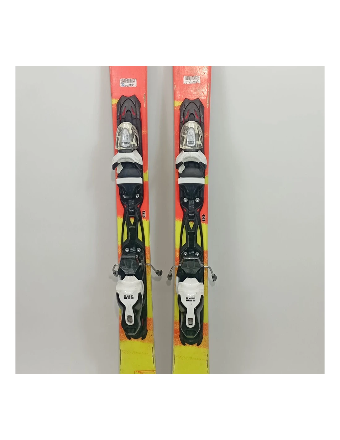 These skis have been used for a few seasons. They have visible scratches but are in good working condition. These signs of wear are typical and expected for skis that have already been ridden. They are a good choice for those looking for pre-owned skis that offer good performance with visible but limited wear.