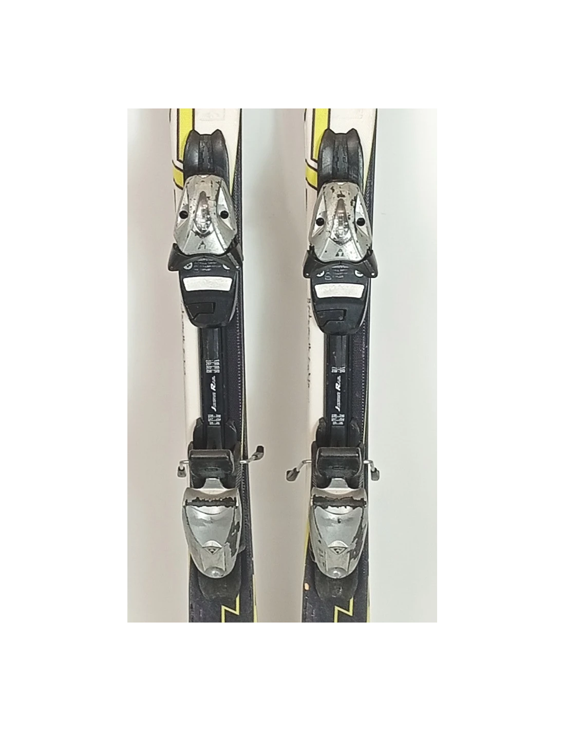 These skis have been used for a few seasons. They have visible scratches but are in good working condition. These signs of wear are typical and expected for skis that have already been ridden. They are a good choice for those looking for pre-owned skis that offer good performance with visible but limited wear.