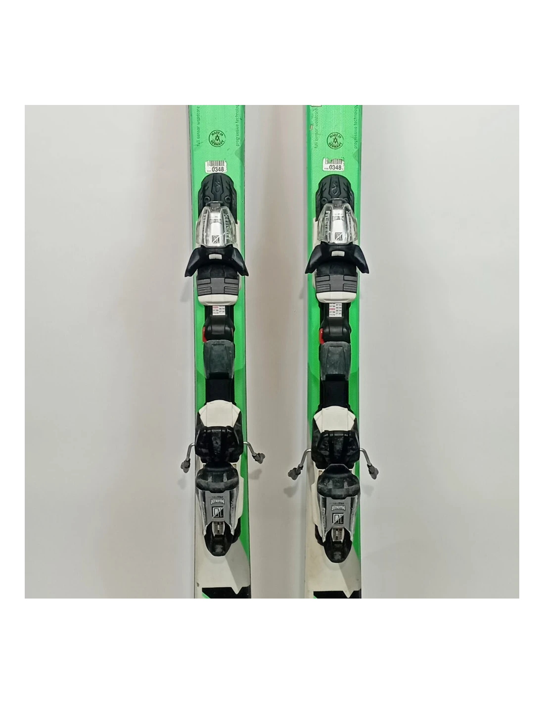 These skis have been used for a few seasons. They have visible scratches but are in good working condition. These signs of wear are typical and expected for skis that have already been ridden. They are a good choice for those looking for pre-owned skis that offer good performance with visible but limited wear.