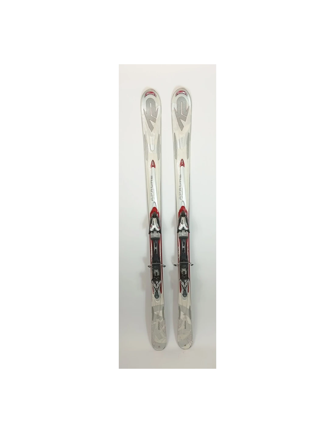 These skis have been used for a few seasons. They have visible scratches but are in good working condition. These signs of wear are typical and expected for skis that have already been ridden. They are a good choice for those looking for pre-owned skis that offer good performance with visible but limited wear.