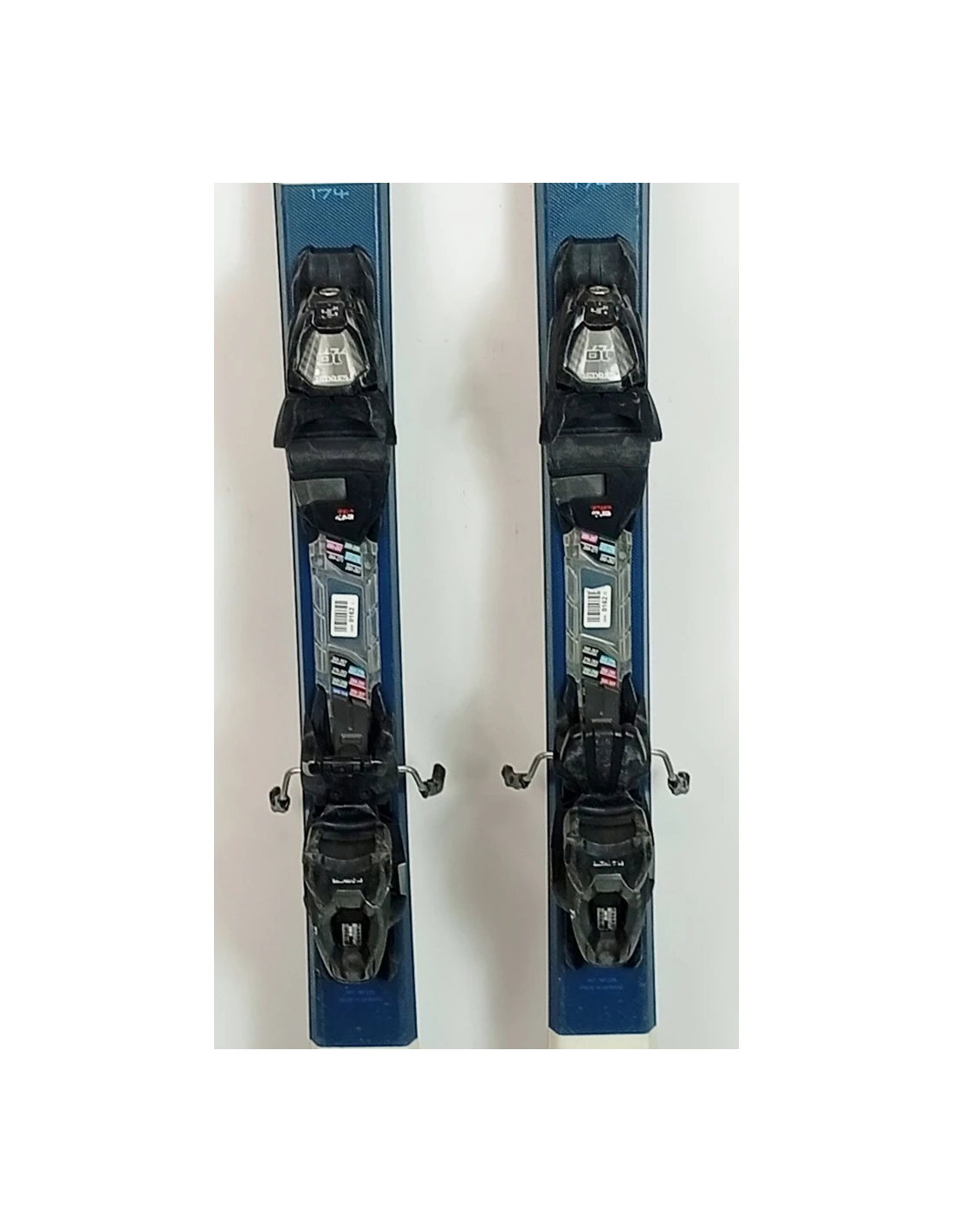 These skis have been used for a few seasons. They have visible scratches but are in good working condition. These signs of wear are typical and expected for skis that have already been ridden. They are a good choice for those looking for pre-owned skis that offer good performance with visible but limited wear.