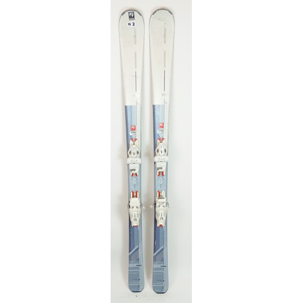 These skis have been used for a few seasons. They show visible scratches but are in good working condition. These signs of wear are typical and expected for skis that have already seen some runs. They represent a wise choice for those looking for used skis offering good performance with visible but contained wear.