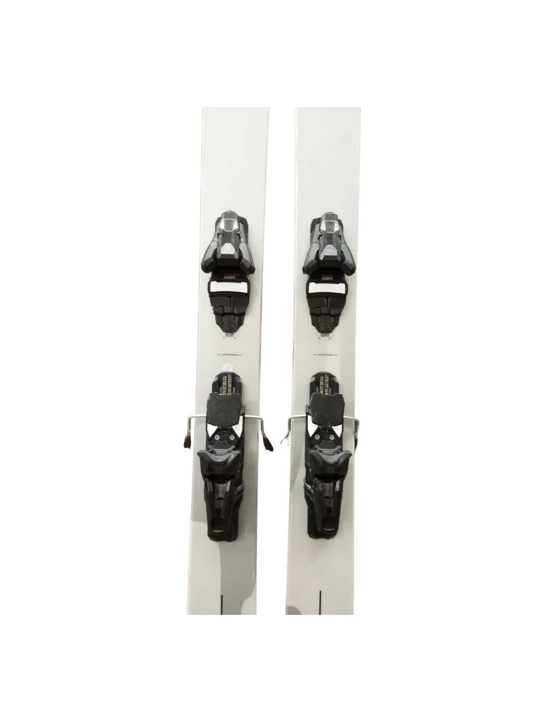 These skis have been used for a few seasons. They have visible scratches but are in good working condition. These signs of wear are typical and expected for skis that have already been ridden. They are a good choice for those looking for pre-owned skis that offer good performance with visible but limited wear.