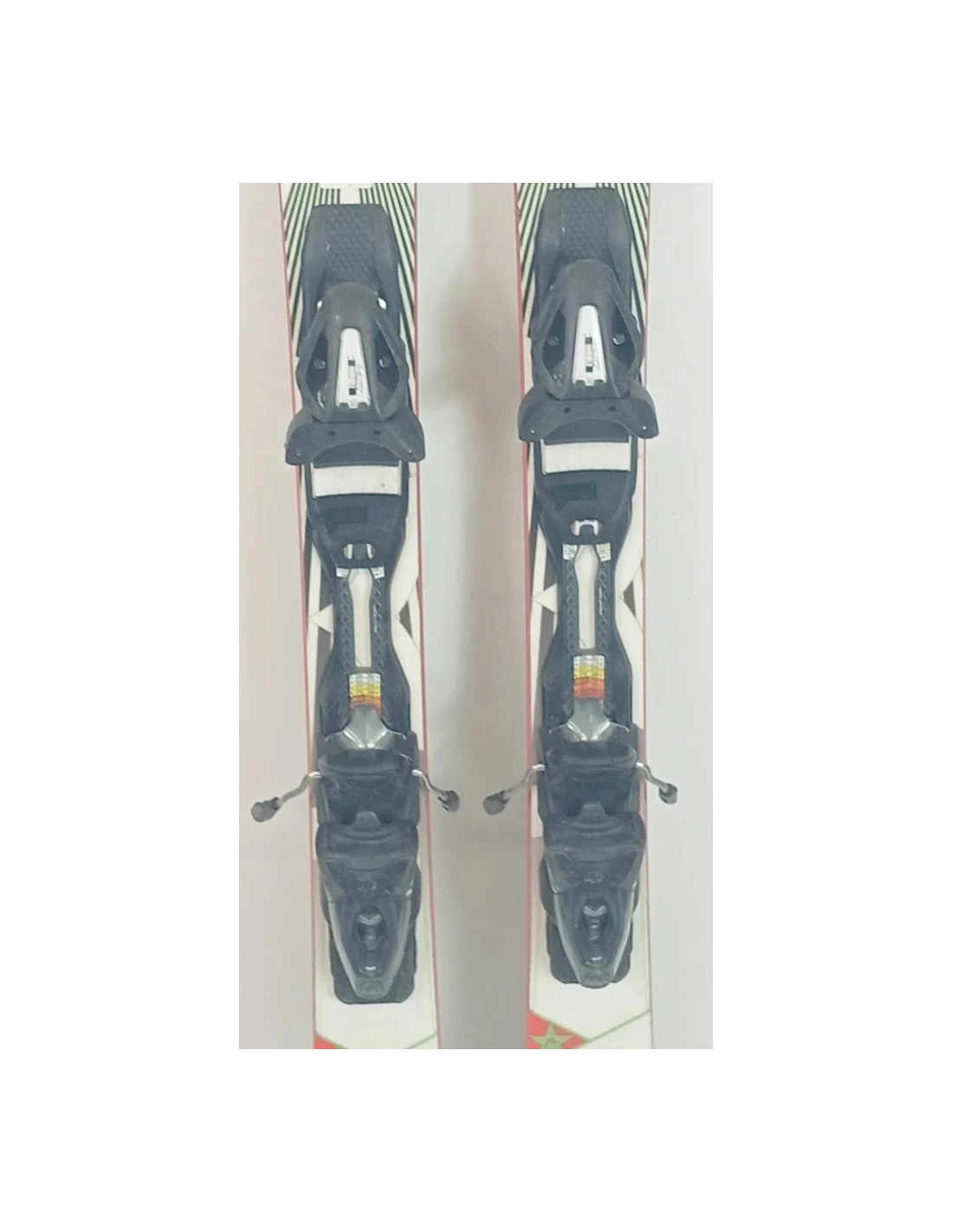 These skis have been used for a few seasons. They have visible scratches but are in good working condition. These signs of wear are typical and expected for skis that have already been ridden. They are a good choice for those looking for pre-owned skis that offer good performance with visible but limited wear.