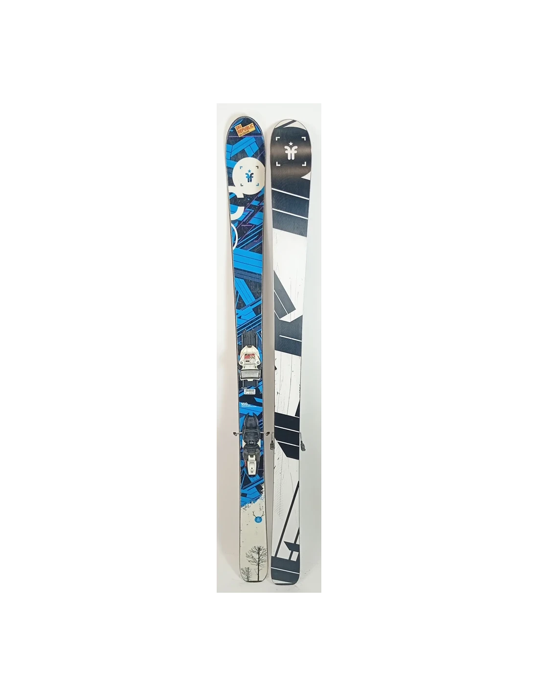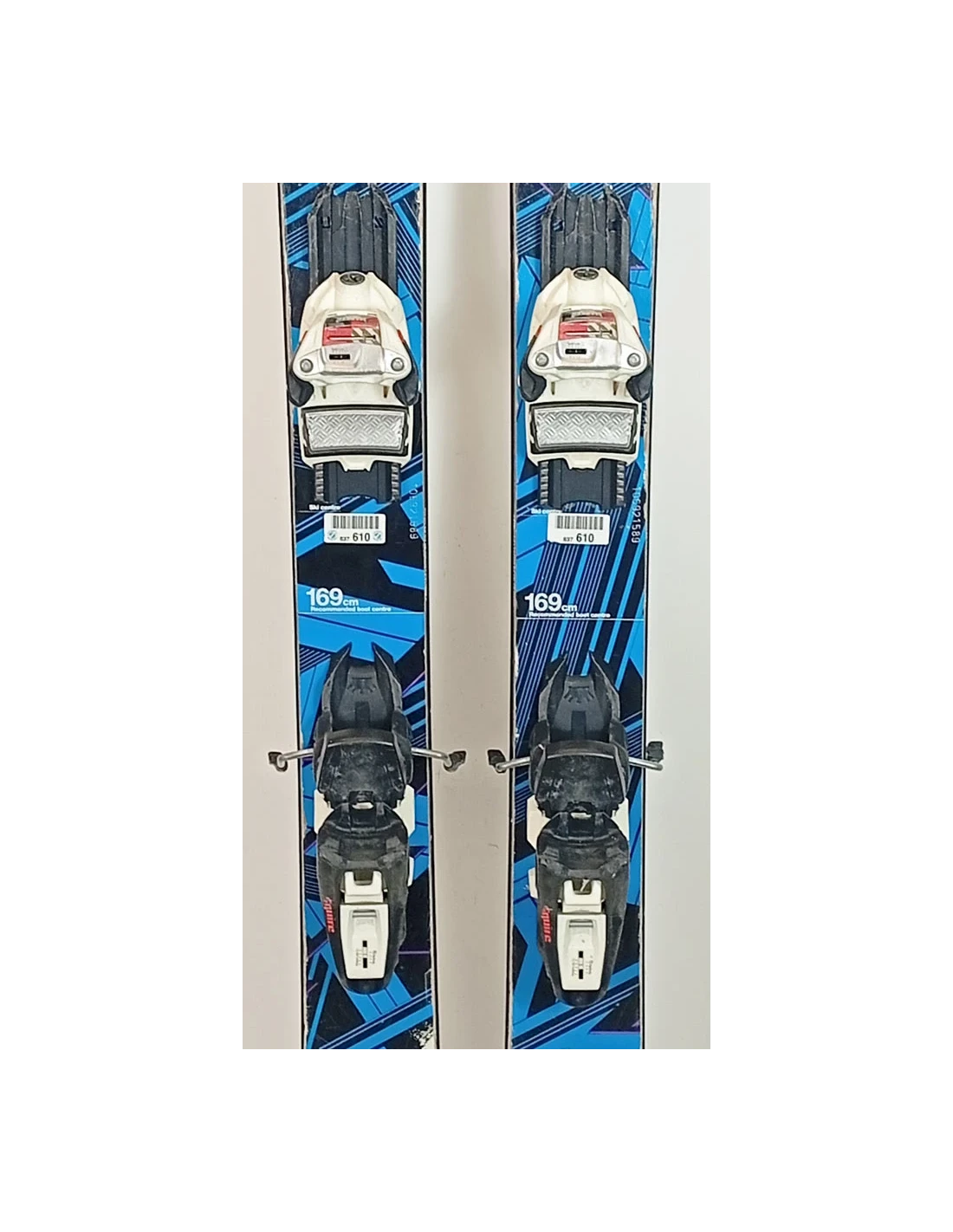 These skis have been used for a few seasons. They have visible scratches but are in good working condition. These signs of wear are typical and expected for skis that have already been ridden. They are a good choice for those looking for pre-owned skis that offer good performance with visible but limited wear.