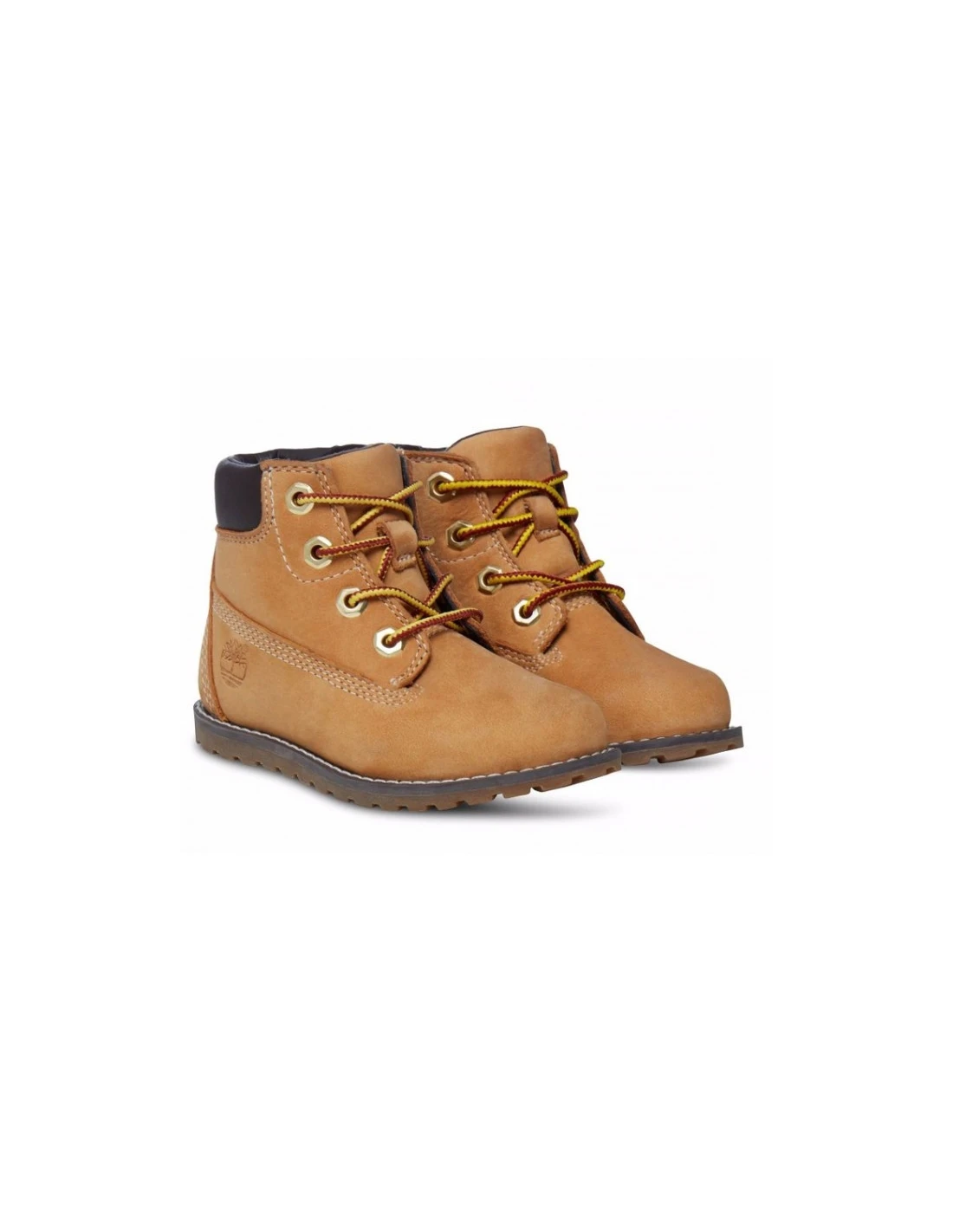 Light and comfortable, the POKEY PINE 6-INCH BOOT WHEAT ankle boots from the TIMBERLAND brand are perfect for young children. The Splash Blaster treatment applied to the leather protects it against rain and stains. Featuring a 42% recycled rubber outsole, these shoes will provide good insulation and allow your child's feet to be warm and dry.