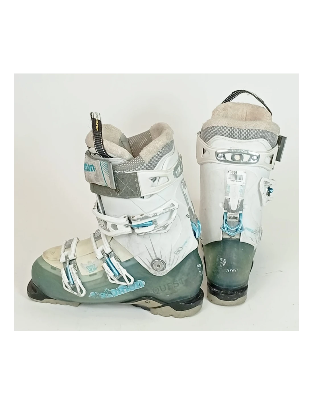 The Salomon Quest 80 W is designed for versatile skiers who want to transcend the boundaries between on-piste and off-piste. Its cuff release system for walking allows access to ungroomed areas or simply allows for more comfortable walking in the resort. Its intermediate flex and women's-specific fit provide a secure fit without sacrificing comfort, while the lightweight shell makes long days on skis easier. It's the ideal boot for those who love exploring, both in and around the resort.