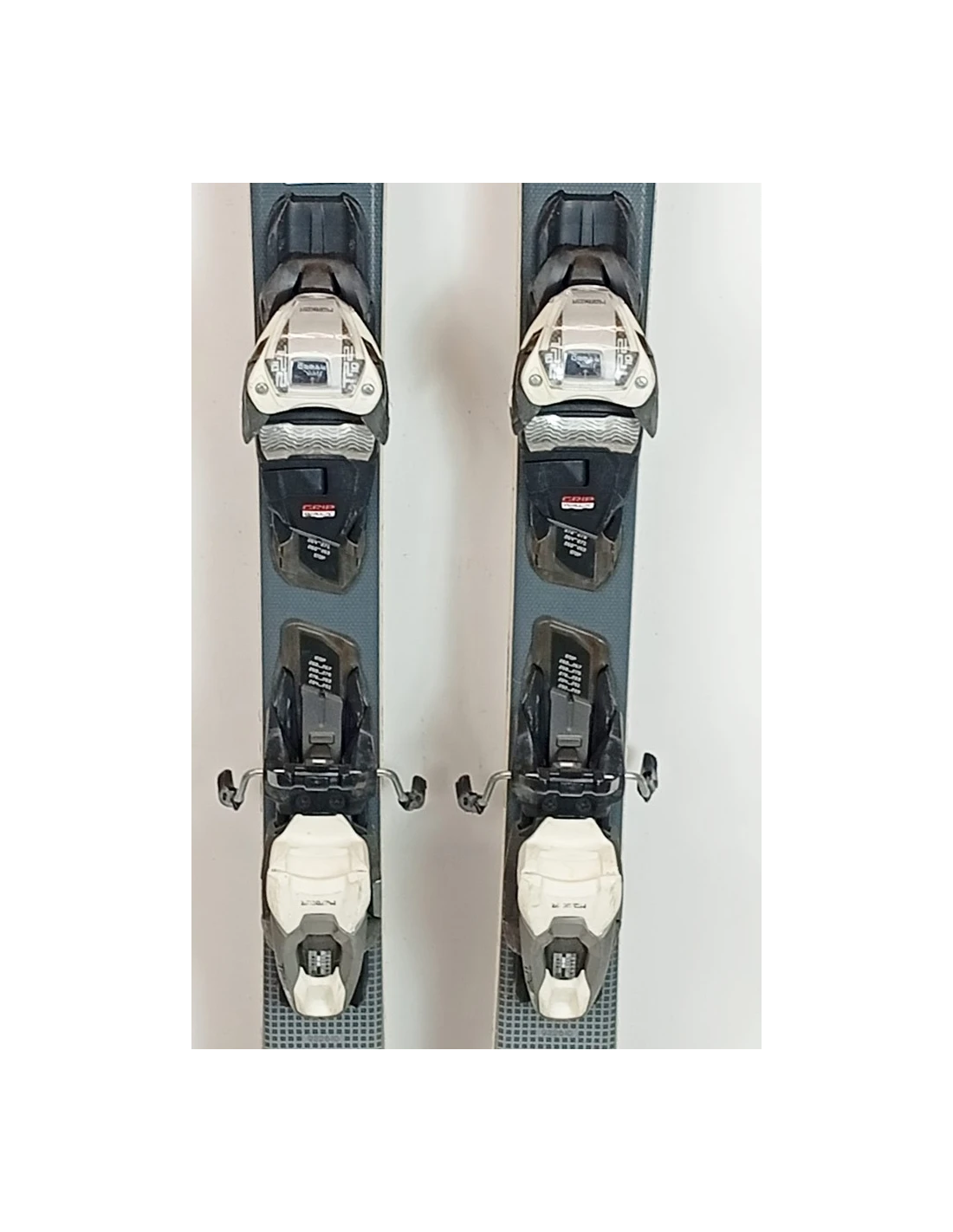 These skis have been used for a few seasons. They have visible scratches but are in good working condition. These signs of wear are typical and expected for skis that have already been ridden. They are a good choice for those looking for pre-owned skis that offer good performance with visible but limited wear.