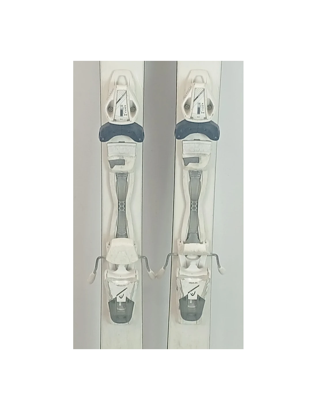 These skis have been used for a few seasons. They have visible scratches but are in good working condition. These signs of wear are typical and expected for skis that have already been ridden. They are a good choice for those looking for pre-owned skis that offer good performance with visible but limited wear.