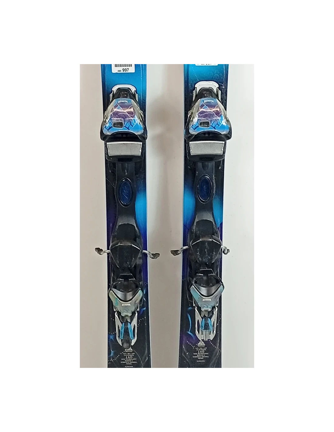 These skis have been used for a few seasons. They have visible scratches but are in good working condition. These signs of wear are typical and expected for skis that have already been ridden. They are a good choice for those looking for pre-owned skis that offer good performance with visible but limited wear.