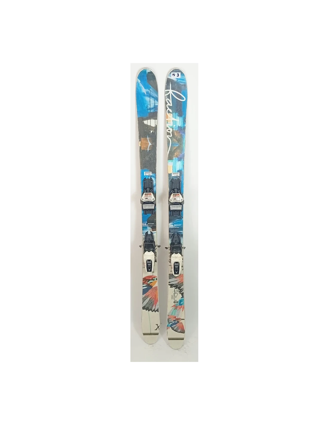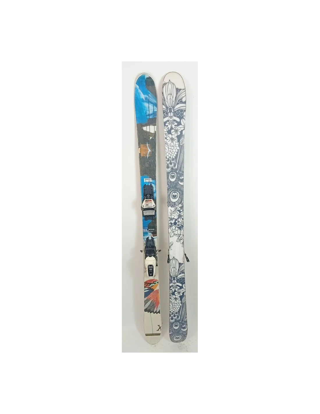 These skis have been used for a few seasons. They have visible scratches but are in good working condition. These signs of wear are typical and expected for skis that have already been ridden. They are a good choice for those looking for pre-owned skis that offer good performance with visible but limited wear.