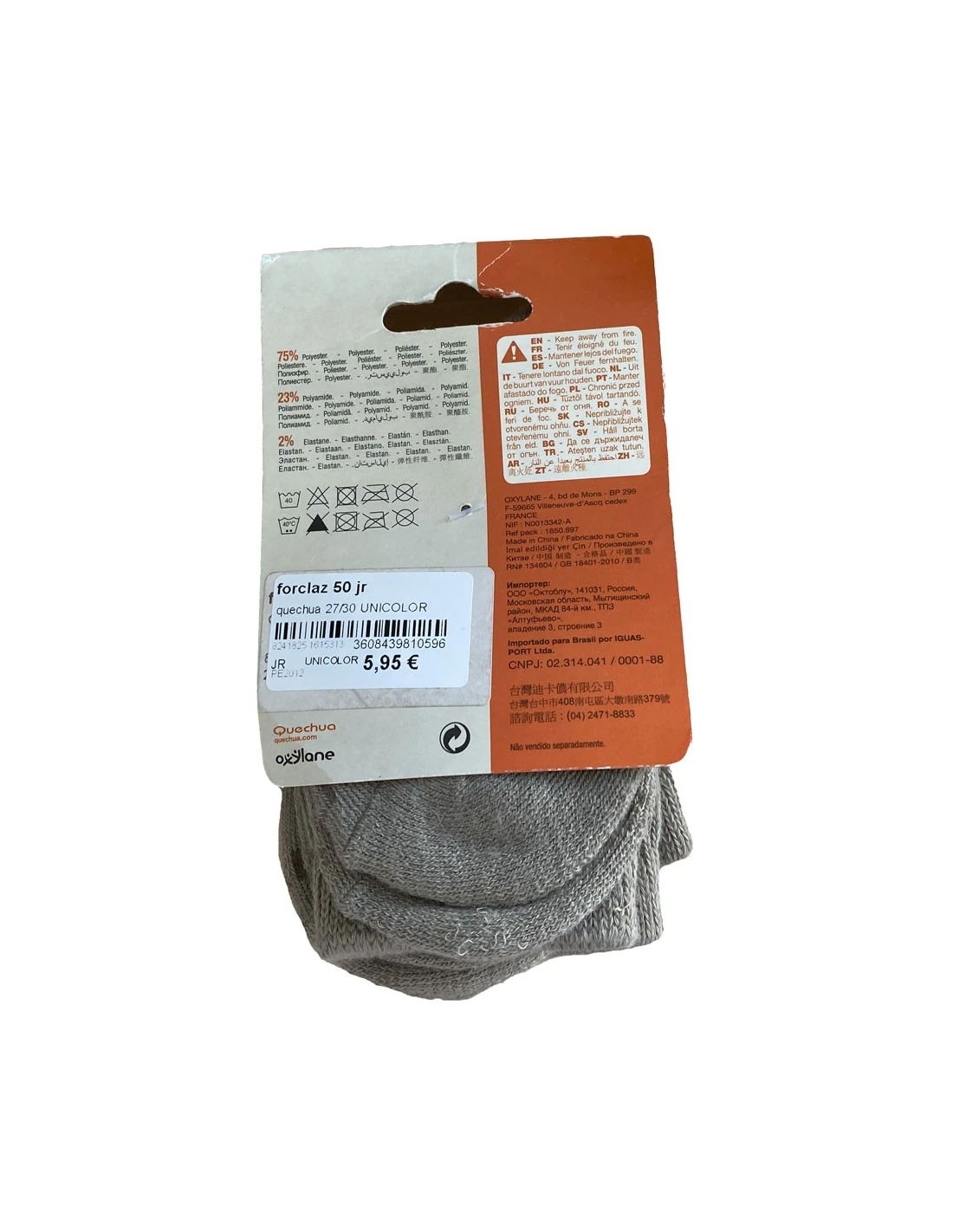 - Composición: 75 % poliéster, 23 % poliamida, 2 % elastano