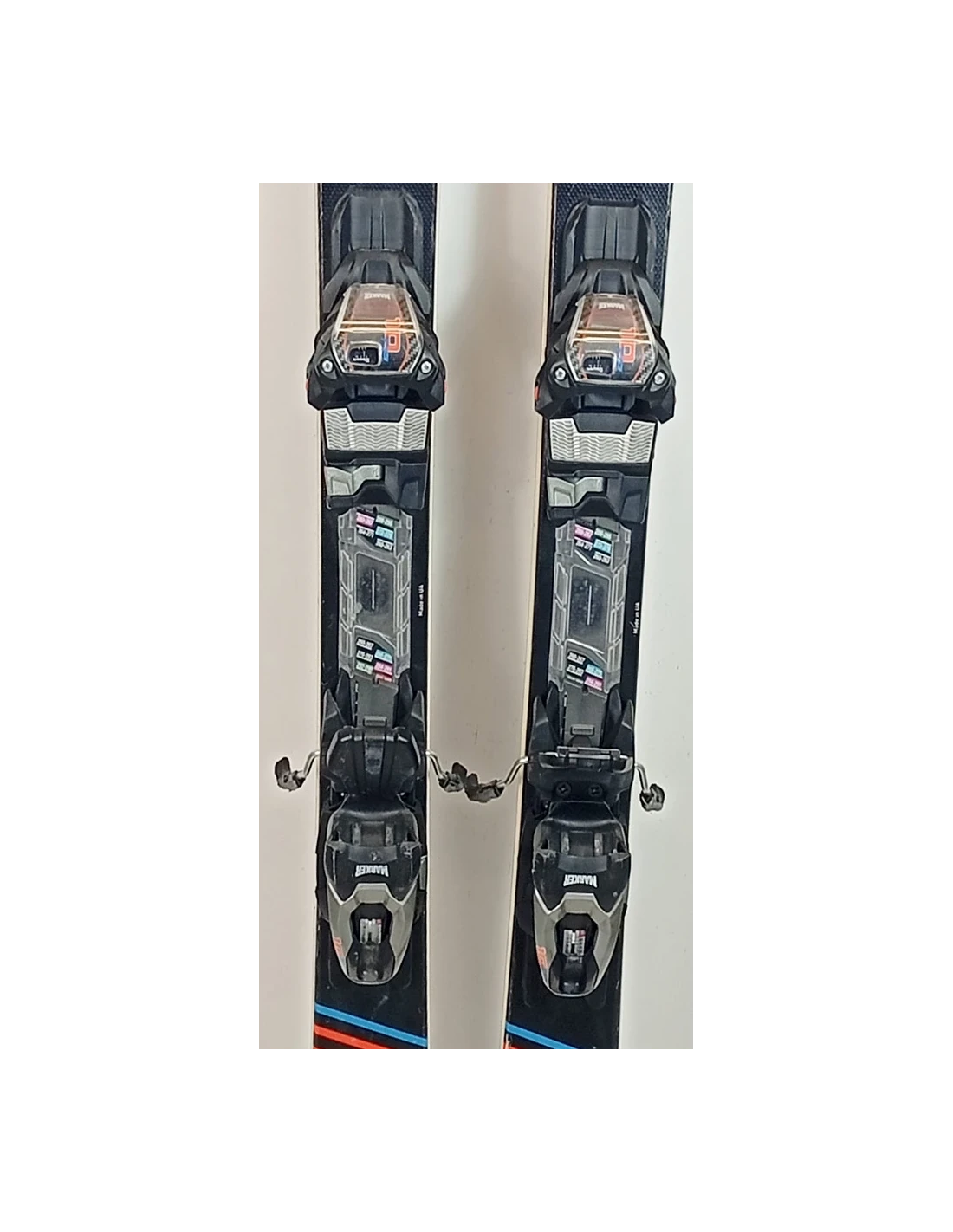 Estos esquís se han usado durante varias temporadas. Tienen rayones visibles, pero están en buen estado de funcionamiento. Estas señales de desgaste son típicas y esperadas en esquís ya usados. Son una buena opción para quienes buscan esquís de segunda mano que ofrezcan un buen rendimiento con un desgaste visible pero limitado.