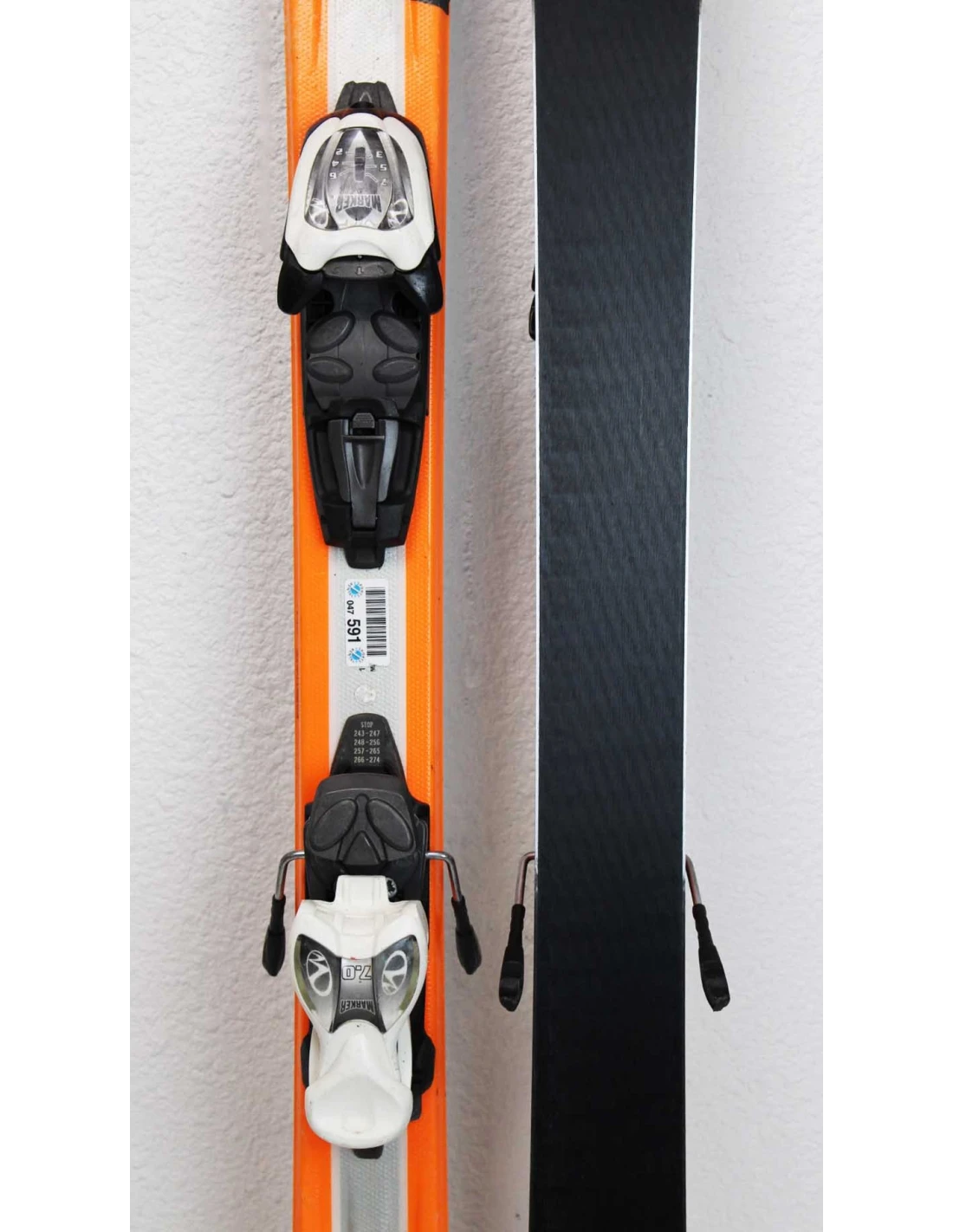 Estos esquís se han usado durante varias temporadas. Tienen rayones visibles, pero están en buen estado de funcionamiento. Estas señales de desgaste son típicas y esperadas en esquís ya usados. Son una buena opción para quienes buscan esquís de segunda mano que ofrezcan un buen rendimiento con un desgaste visible pero limitado.