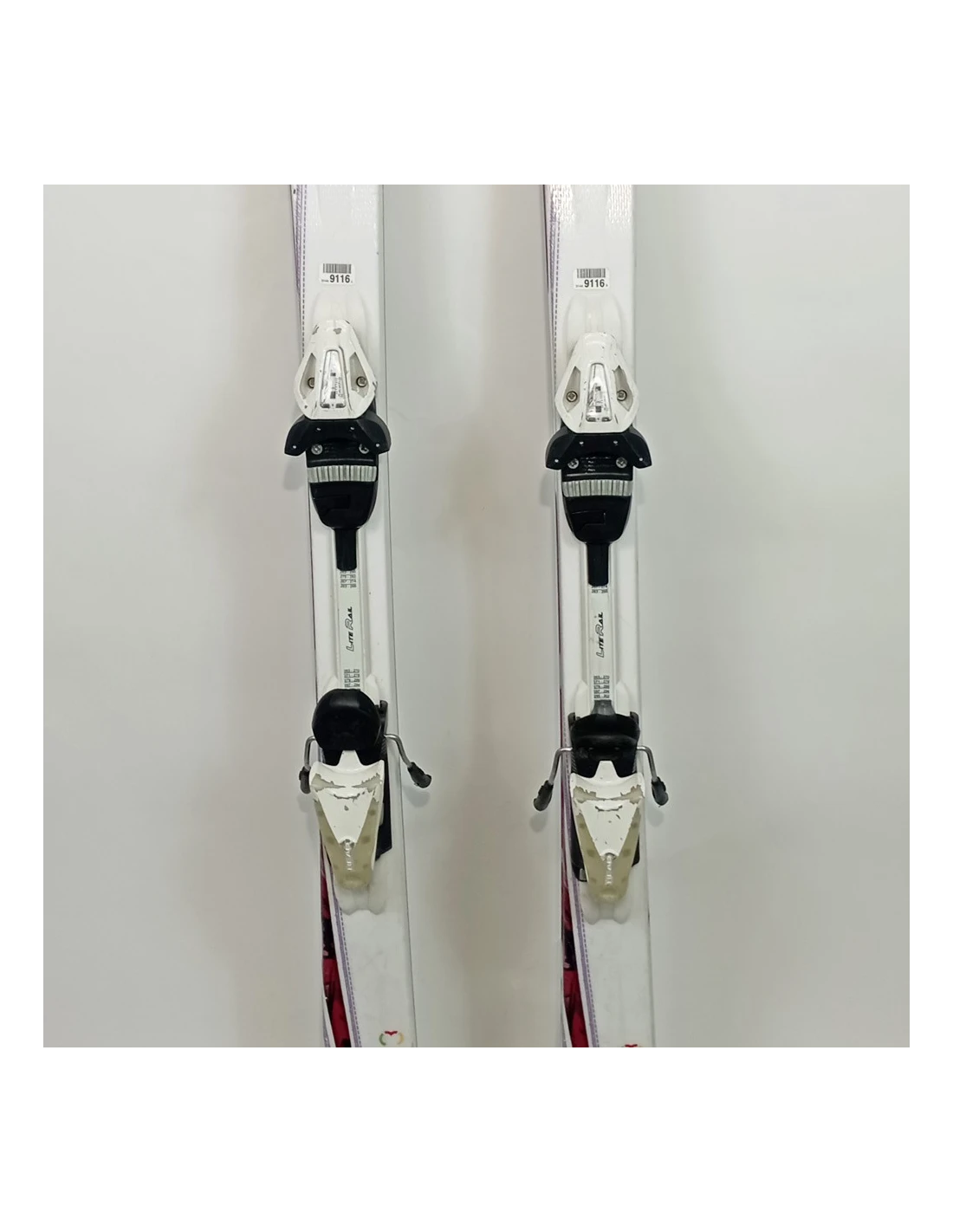 Estos esquís se han usado durante varias temporadas. Tienen rayones visibles, pero están en buen estado de funcionamiento. Estas señales de desgaste son típicas y esperadas en esquís ya usados. Son una buena opción para quienes buscan esquís de segunda mano que ofrezcan un buen rendimiento con un desgaste visible pero limitado.