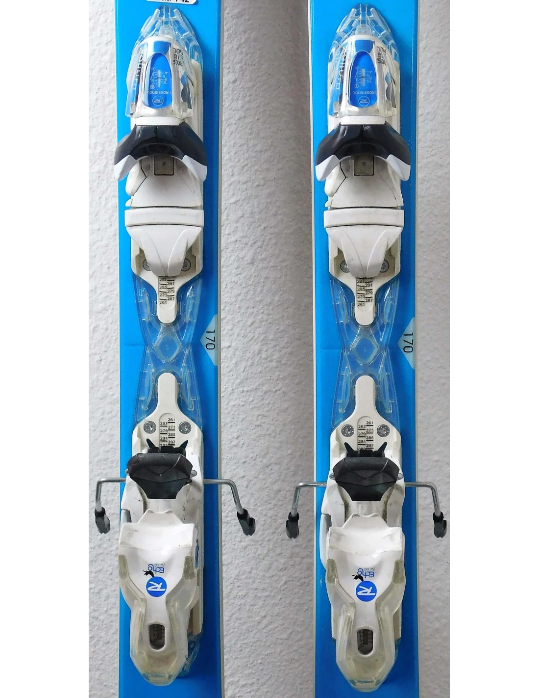 Estos esquís se han usado durante varias temporadas. Tienen rayones visibles, pero están en buen estado de funcionamiento. Estas señales de desgaste son típicas y esperadas en esquís ya usados. Son una buena opción para quienes buscan esquís de segunda mano que ofrezcan un buen rendimiento con un desgaste visible pero limitado.