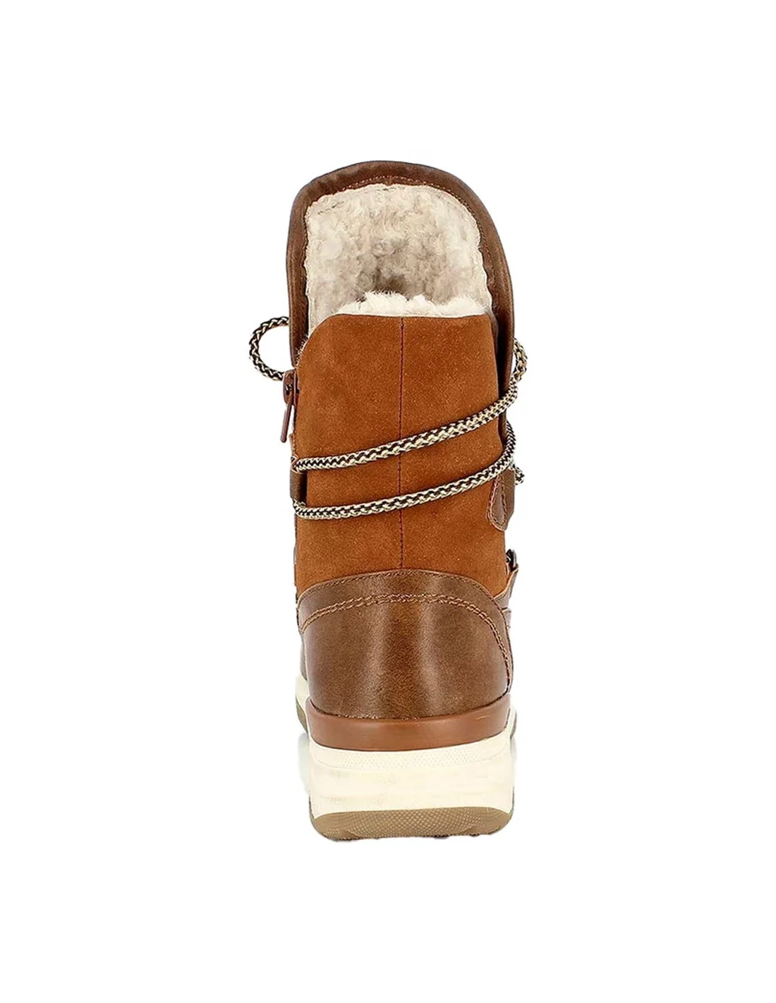 La bota après-ski Kimberfeel Kresty está diseñada para mujeres que desean combinar estilo y comodidad durante sus salidas por la ciudad o la estación. Su parte superior de poliuretano ofrece una protección eficaz contra los elementos, mientras que el cálido forro de poliéster, equipado con la membrana Kimbertex impermeable y transpirable, garantiza que los pies estén secos y calientes. El sistema de cremallera lateral facilita su calce y la suela de goma termoplástica, equipada con el sistema SCS autolimpiante, garantiza un agarre óptimo en superficies nevadas o heladas.