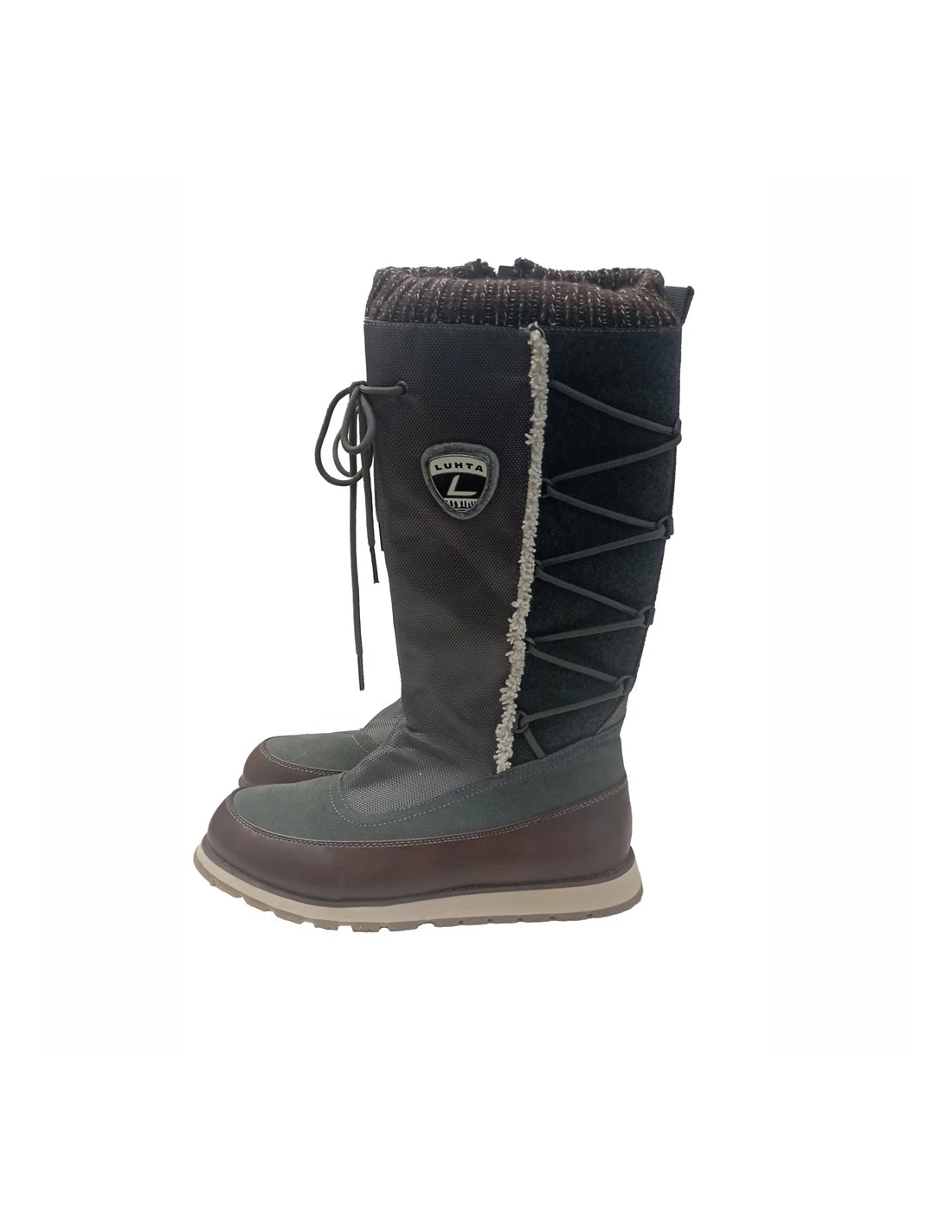 La chaussure LINDA conçue par LUTHA, elle présente une silhouette élégante avec une tige en cuir synthétique et en textile. La botte est dotée d'une fermeture à lacets et d'une semelle robuste qui offre un bon maintien et une traction optimale. Elle est idéale pour les activités extérieures par temps froid, offrant à la fois confort et style.