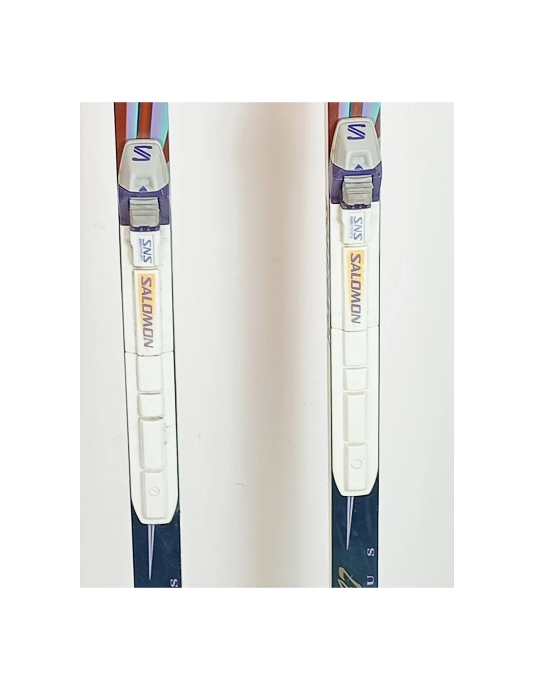 Ces skis ont été utilisés durant quelques saisons. Ils présentent des rayures visibles mais sont en bon état fonctionnel. Ces marques d'usure sont typiques et attendues pour des skis ayant déjà vécu des descentes. Ils représentent un choix judicieux pour ceux qui recherchent des skis d'occasion offrant une bonne performance avec une usure visible mais contenue.