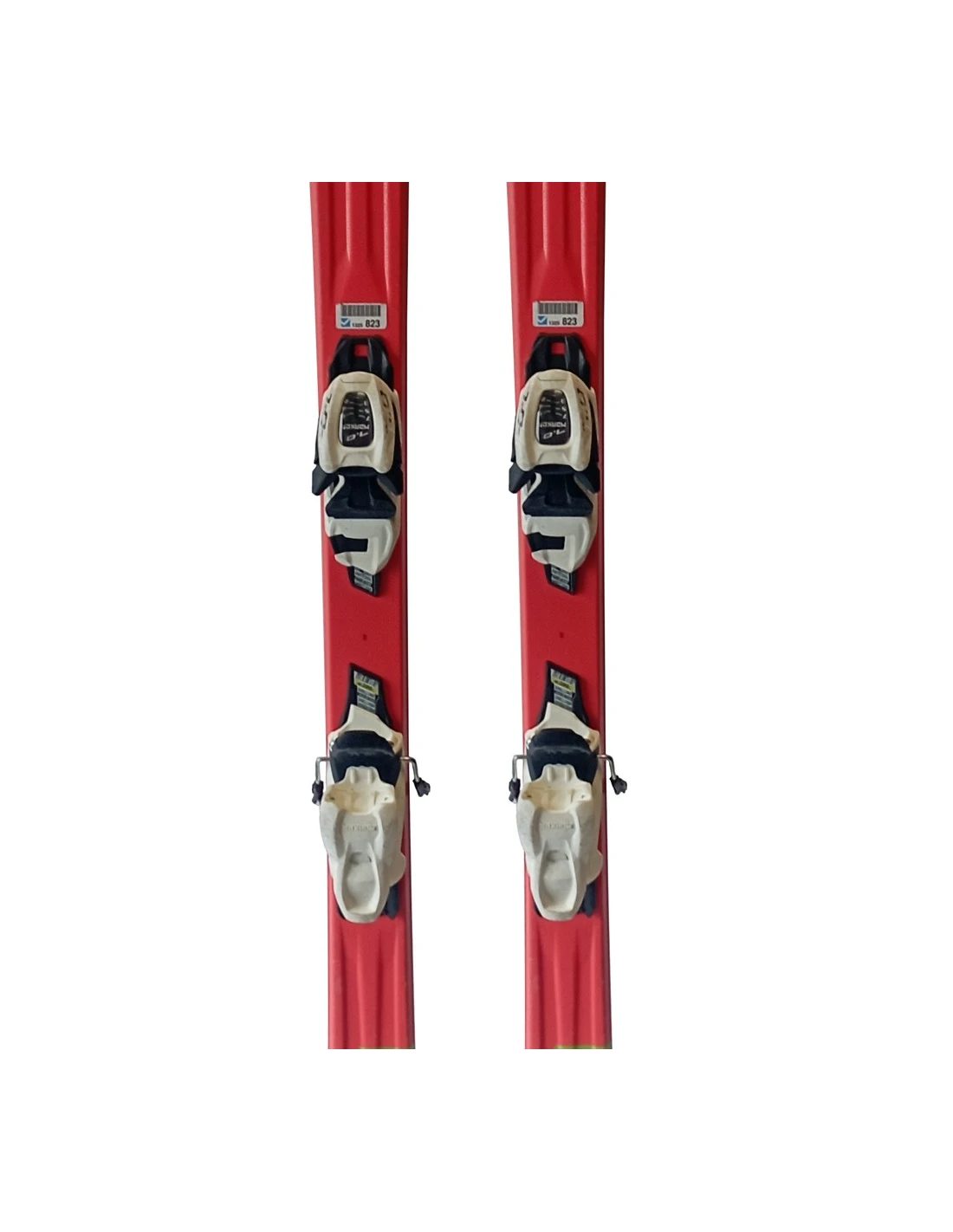 Ces skis ont été utilisés durant quelques saisons. Ils présentent des rayures visibles mais sont en bon état fonctionnel. Ces marques d'usure sont typiques et attendues pour des skis ayant déjà vécu des descentes. Ils représentent un choix judicieux pour ceux qui recherchent des skis d'occasion offrant une bonne performance avec une usure visible mais contenue.