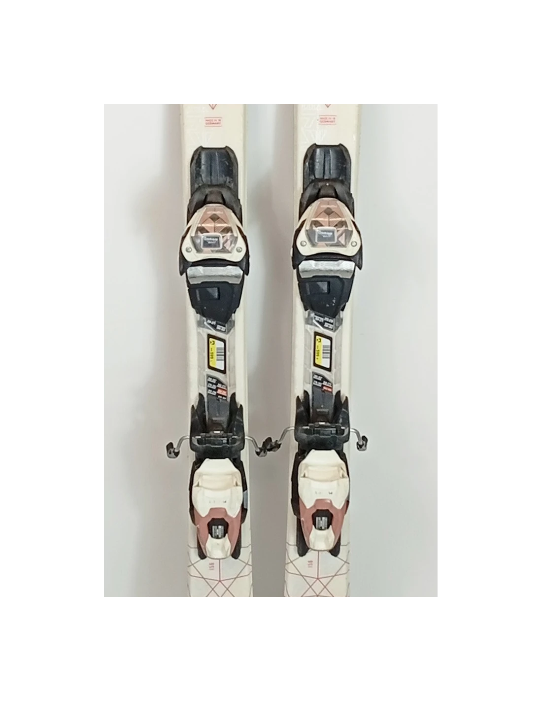 Ces skis ont été utilisés durant quelques saisons. Ils présentent des rayures visibles mais sont en bon état fonctionnel. Ces marques d'usure sont typiques et attendues pour des skis ayant déjà vécu des descentes. Ils représentent un choix judicieux pour ceux qui recherchent des skis d'occasion offrant une bonne performance avec une usure visible mais contenue.