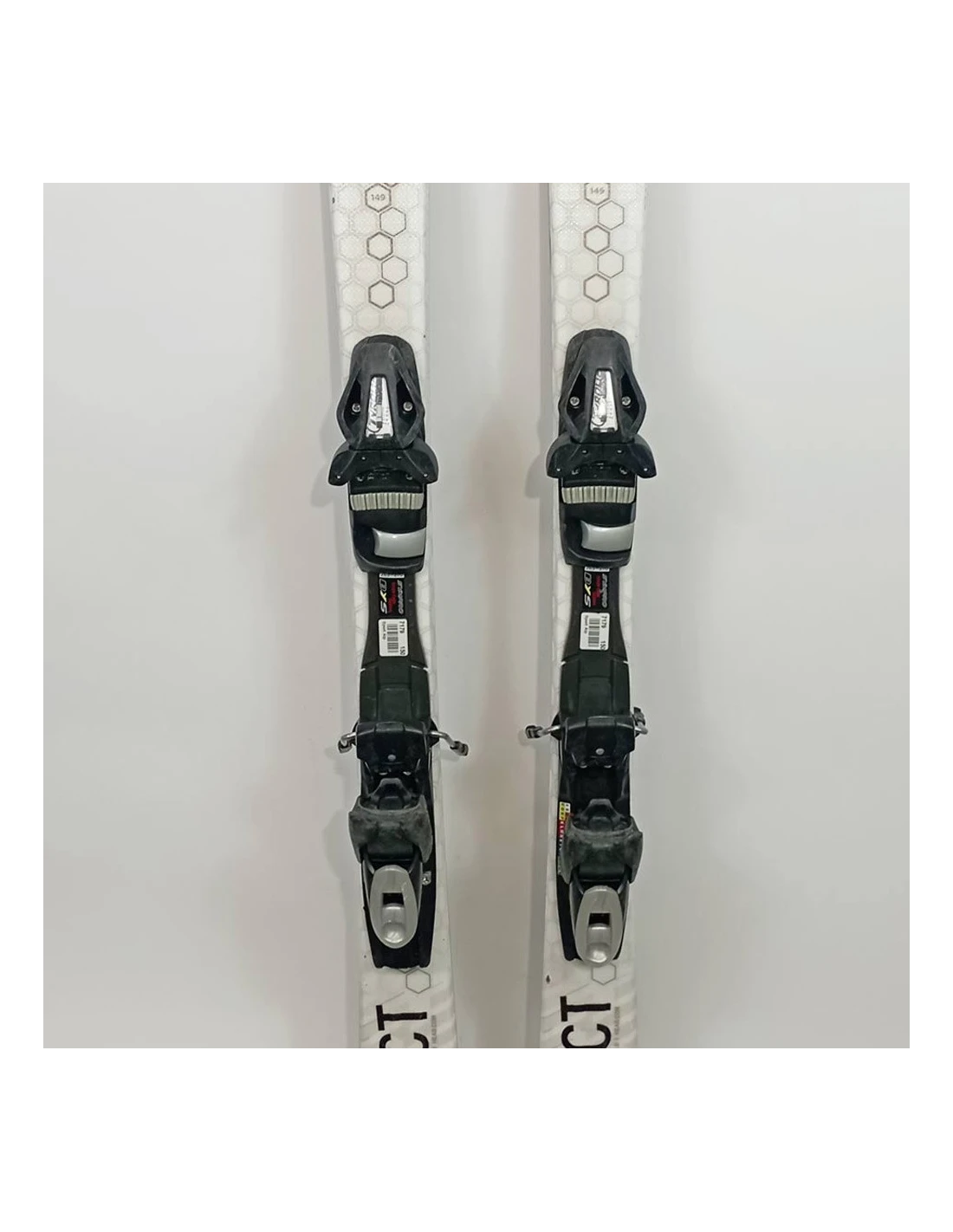 Ces skis ont été utilisés durant quelques saisons. Ils présentent des rayures visibles mais sont en bon état fonctionnel. Ces marques d'usure sont typiques et attendues pour des skis ayant déjà vécu des descentes. Ils représentent un choix judicieux pour ceux qui recherchent des skis d'occasion offrant une bonne performance avec une usure visible mais contenue.