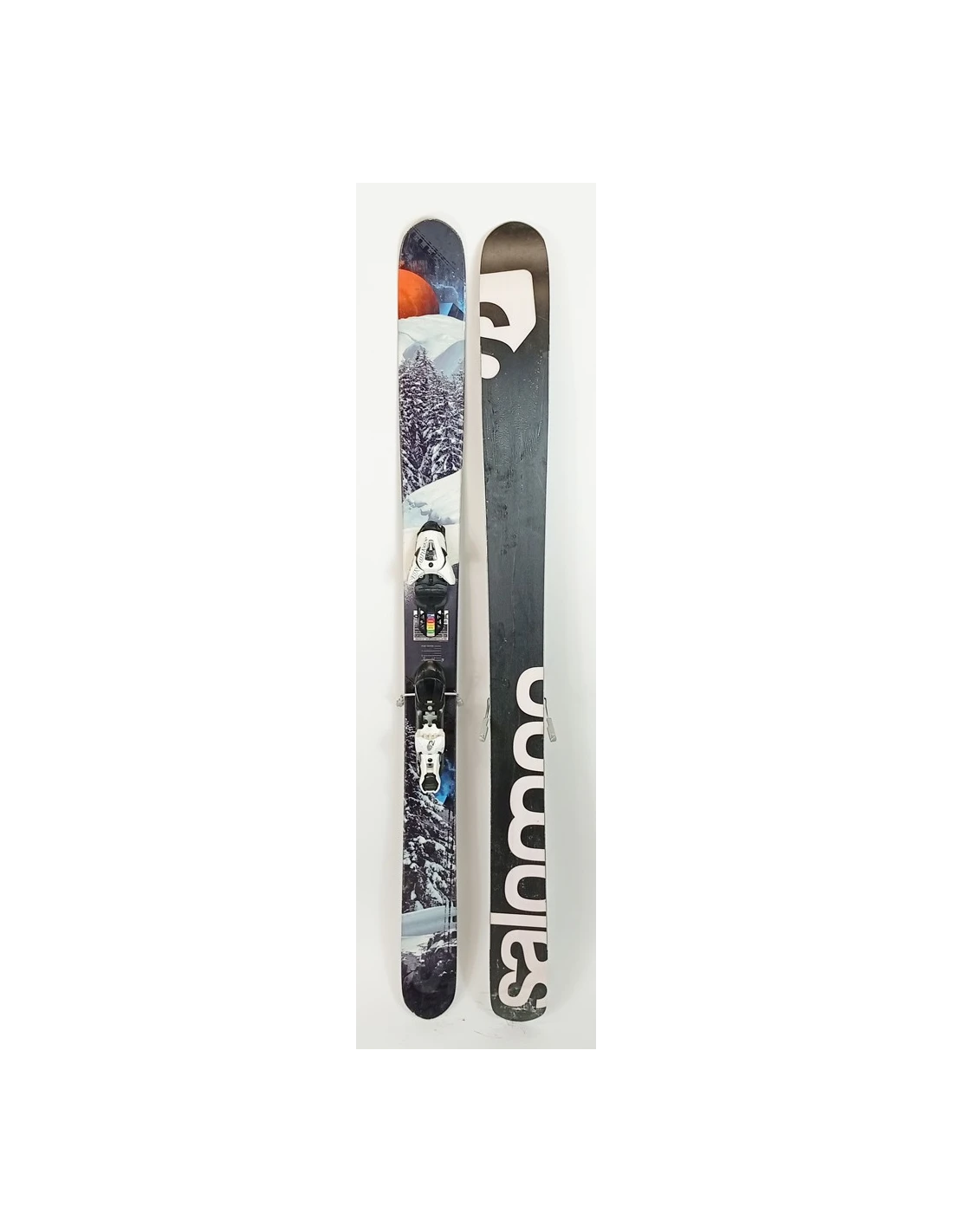 Ces skis ont été utilisés durant quelques saisons. Ils présentent des rayures visibles mais sont en bon état fonctionnel. Ces marques d'usure sont typiques et attendues pour des skis ayant déjà vécu des descentes. Ils représentent un choix judicieux pour ceux qui recherchent des skis d'occasion offrant une bonne performance avec une usure visible mais contenue.