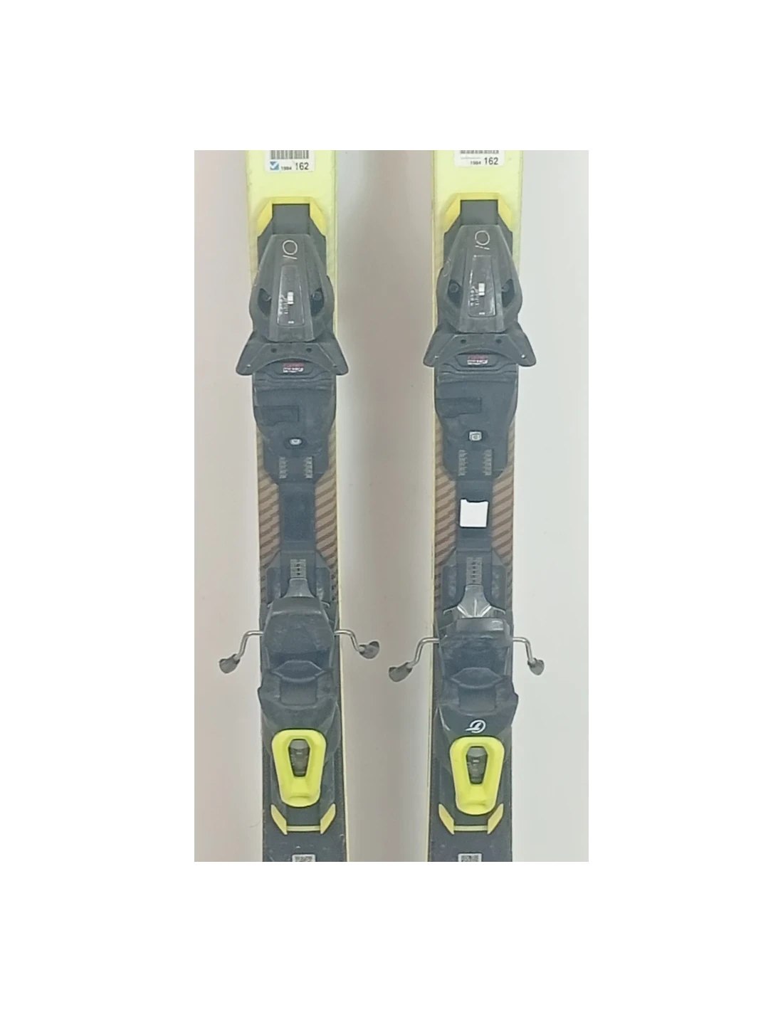 Ces skis ont été utilisés durant quelques saisons. Ils présentent des rayures visibles mais sont en bon état fonctionnel. Ces marques d'usure sont typiques et attendues pour des skis ayant déjà vécu des descentes. Ils représentent un choix judicieux pour ceux qui recherchent des skis d'occasion offrant une bonne performance avec une usure visible mais contenue.