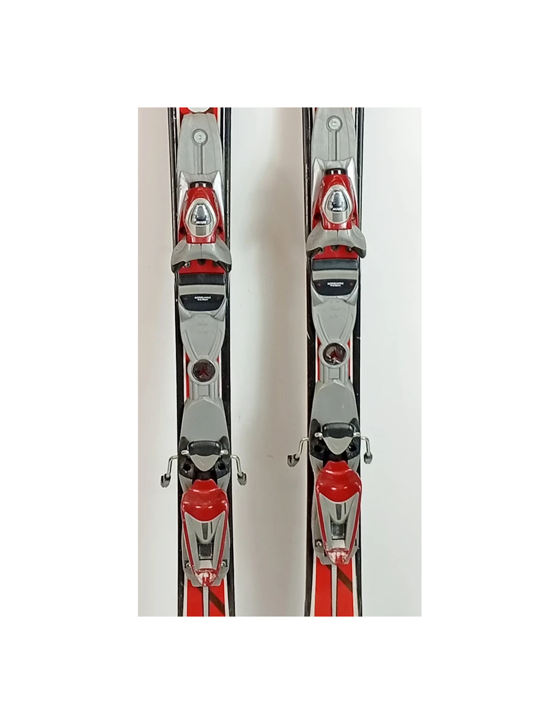 Ces skis ont été utilisés durant quelques saisons. Ils présentent des rayures visibles mais sont en bon état fonctionnel. Ces marques d'usure sont typiques et attendues pour des skis ayant déjà vécu des descentes. Ils représentent un choix judicieux pour ceux qui recherchent des skis d'occasion offrant une bonne performance avec une usure visible mais contenue.