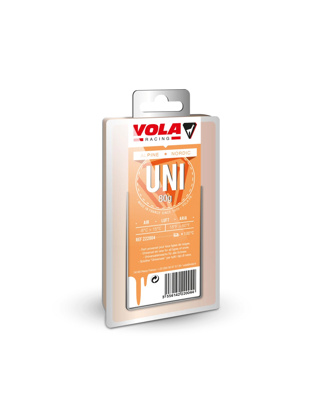 Un passo essenziale nella manutenzione della vostra attrezzatura, la ceratura prepara le vostre suole per massimizzare la sensazione di scivolamento. La cera UNIVERSAL WAX 80 G ORANGE del marchio VOLA RACING è stata progettata per farvi godere lo sci con una temperatura dell'aria esterna che varia da -8° a 15°C. Professionisti o dilettanti, aumentate le vostre prestazioni e guadagnate velocità applicando la cera sulle vostre suole.