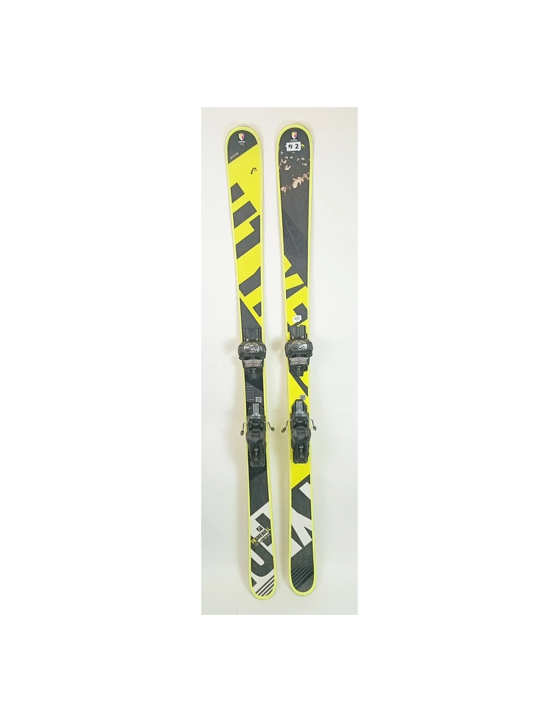 Questi sci sono stati utilizzati per alcune stagioni. Presentano graffi visibili ma sono in buone condizioni di funzionamento. Questi segni di usura sono tipici e prevedibili per sci già utilizzati. Sono un'ottima scelta per chi cerca sci usati che offrano buone prestazioni con un'usura visibile ma limitata.